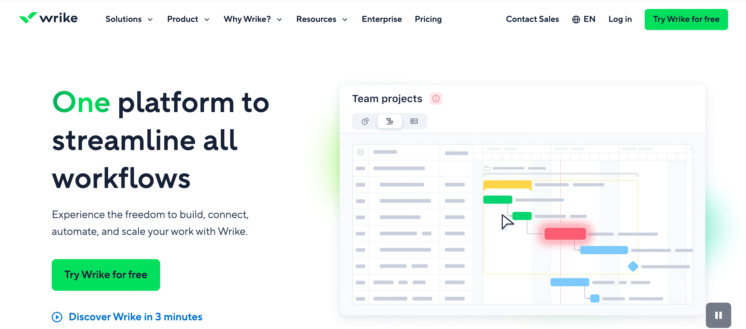Wrike is a cloud-based work management platform that helps teams of all sizes manage projects, organize tasks, and collaborate effectively. It's an all-in-one solution that combines several features into one platform, including: