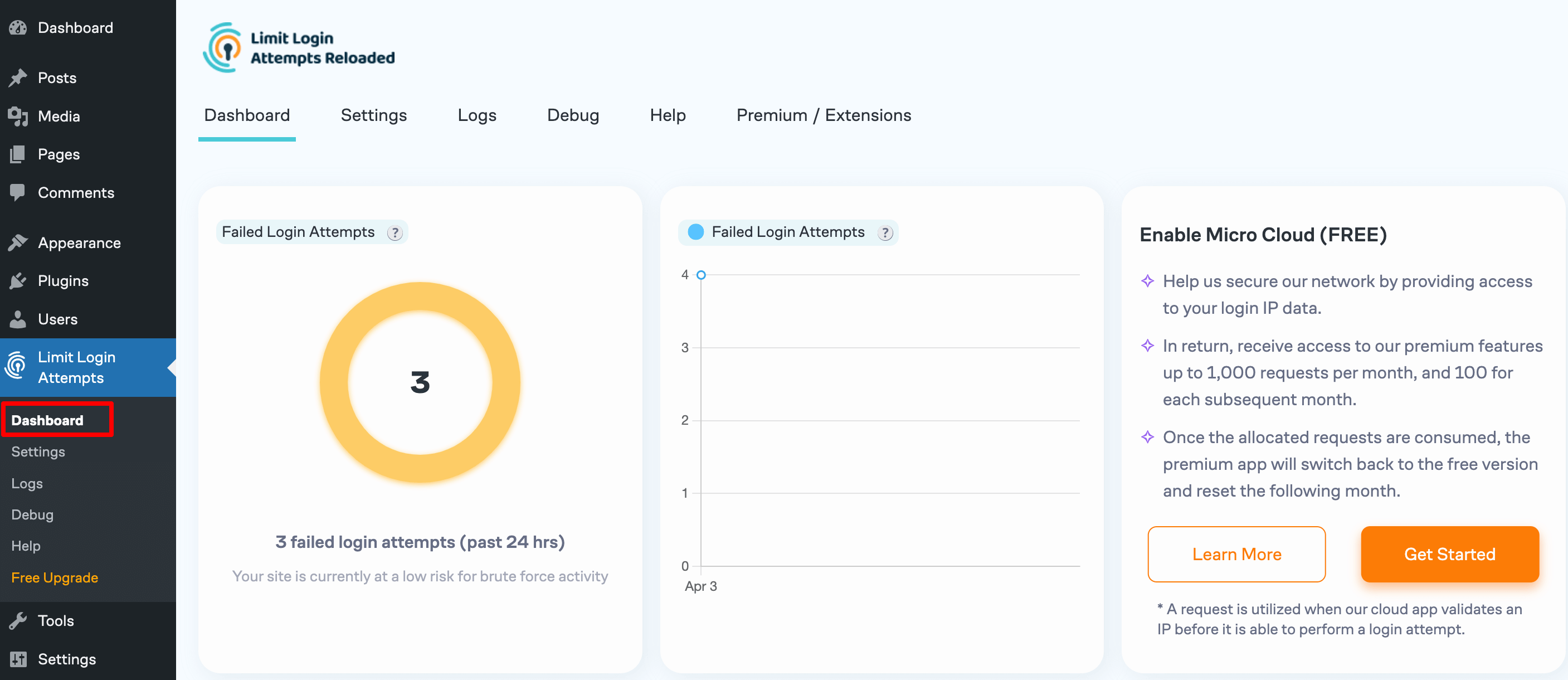 After activating the plugin, navigate to your WordPress dashboard. There you'll find a new option on the left panel – Limit Login Attempts.